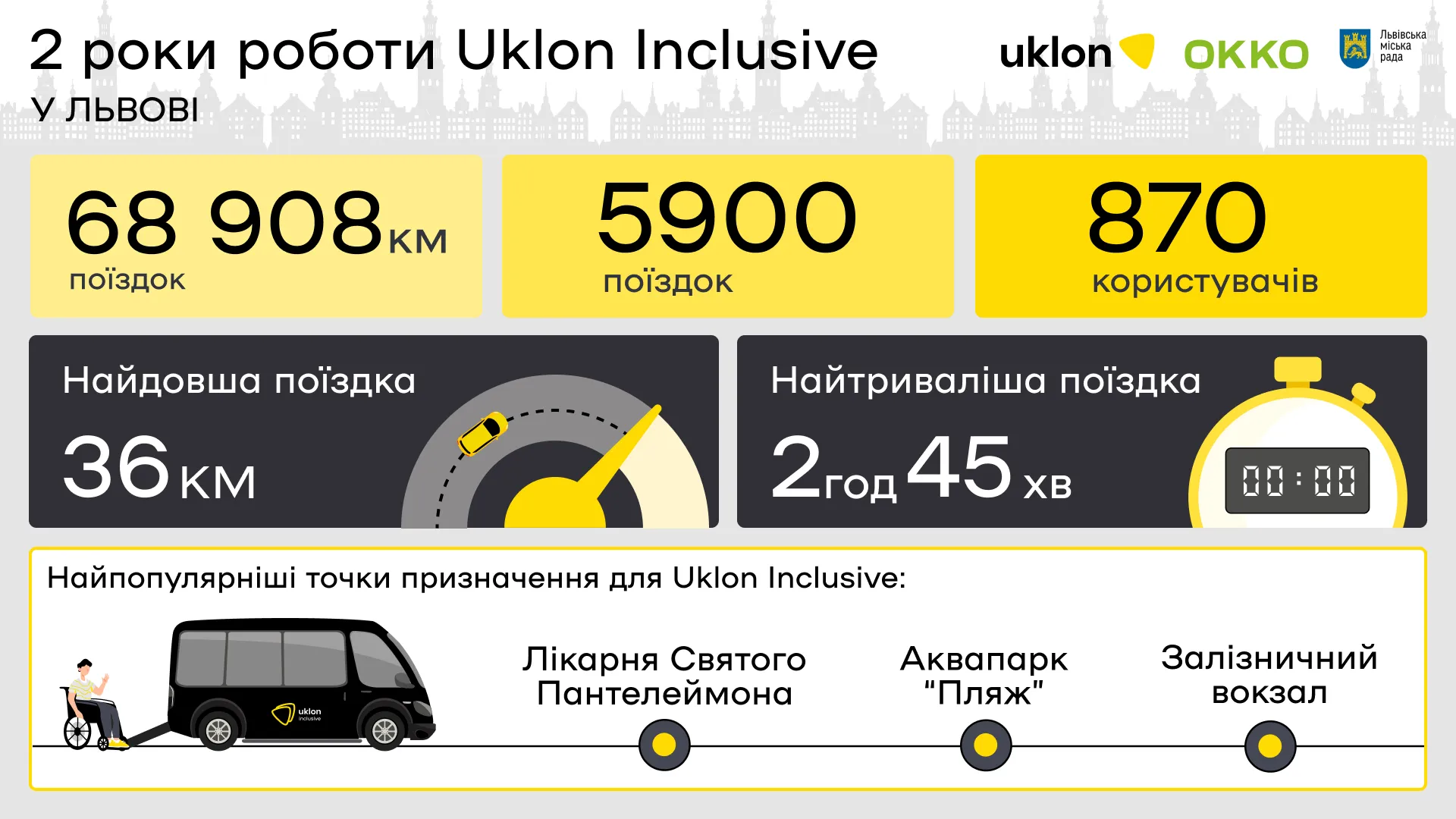 Клас авто Uklon «Інклюзивний» працює у Львові вже два роки. За цей час користувачі на кріслах колісних здійснили майже 6 тисяч поїздок...